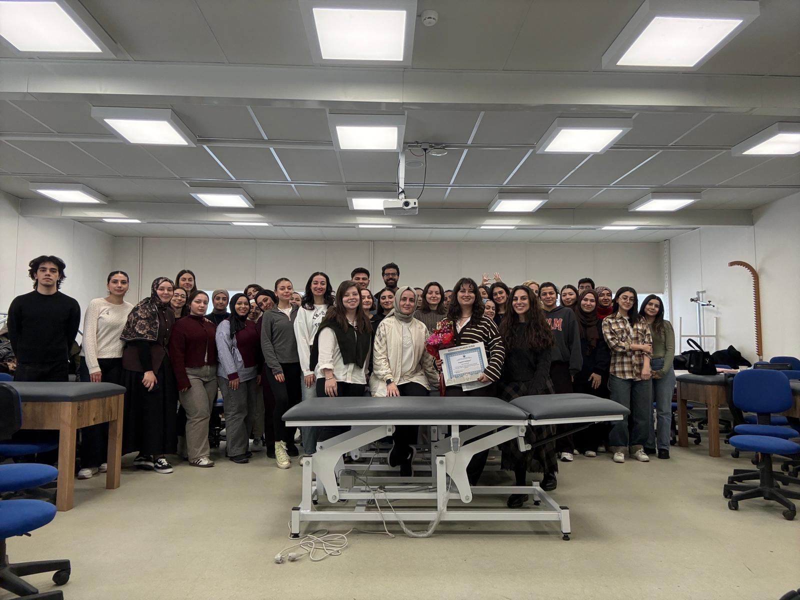 Üniversitemiz Hamidiye Sağlık Bilimleri Fakültesi Fizyoterapi ve Rehabilitasyon Bölümü ile SBÜ Sürekli Eğitim Uygulama ve Araştırma Merkezi iş birliğinde düzenlenen “FTR Şahane Atölyeler Serisi”nin ilk programı olan “Olgularla Manuel Terapi: Vaka Çözümlemeleri” eğitimi, 28 Şubat tarihinde FTR-LAB / MTLZEL 13’te gerçekleştirilmiştir. Dr. Fzt. Şeyda Yıldız’ın eğitmenliğinde düzenlenen programda; temporomandibüler eklem disfonksiyonu, servikal ve lomber disk hernisi yönetimi gibi klinik pratikte önemli yere sahip konular, vaka analizleri ve interaktif çözümlemeler eşliğinde ele alınmıştır. Mezunlarımızın mesleki yetkinliklerini güncellemelerine katkı sağlarken lisans öğrencilerimizin klinik akıl yürütme becerilerini geliştirmeyi amaçlayan bu atölye çalışması, katılımcılara profesyonel bakış açısı kazandıran verimli bir eğitim süreci sunmuştur. Bu değerli organizasyona katkı sunan tüm birimlerimize, eğitmenimize ve katılımcılarımıza teşekkür ederiz.