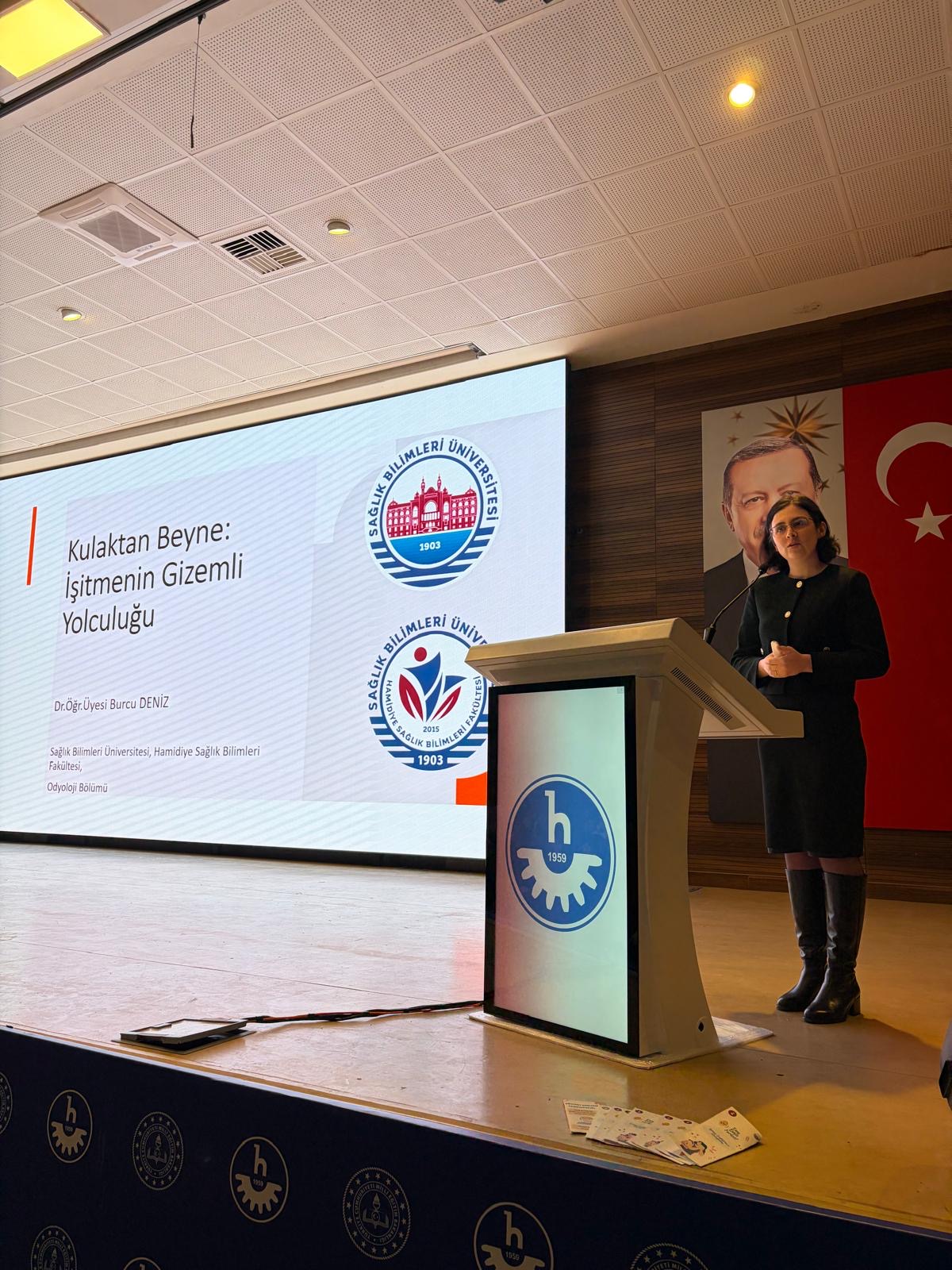 Düzenlenen etkinlikte “İşitme Sağlığı ve Gürültünün Etkileri” konusu ele alınmış; öğrencilere işitme sağlığının korunması, gürültünün işitme üzerindeki olumsuz etkileri ve işitme kaybının önlenmesine yönelik uygulamalar hakkında bilgilendirme yapılmıştır. Etkinlik kapsamında özellikle günlük yaşamda maruz kalınan yüksek ses düzeylerinin işitme sağlığı üzerindeki olası etkileri, güvenli dinleme alışkanlıkları ve işitme sağlığını korumaya yönelik alınabilecek önlemler hakkında bilgiler paylaşılmıştır.