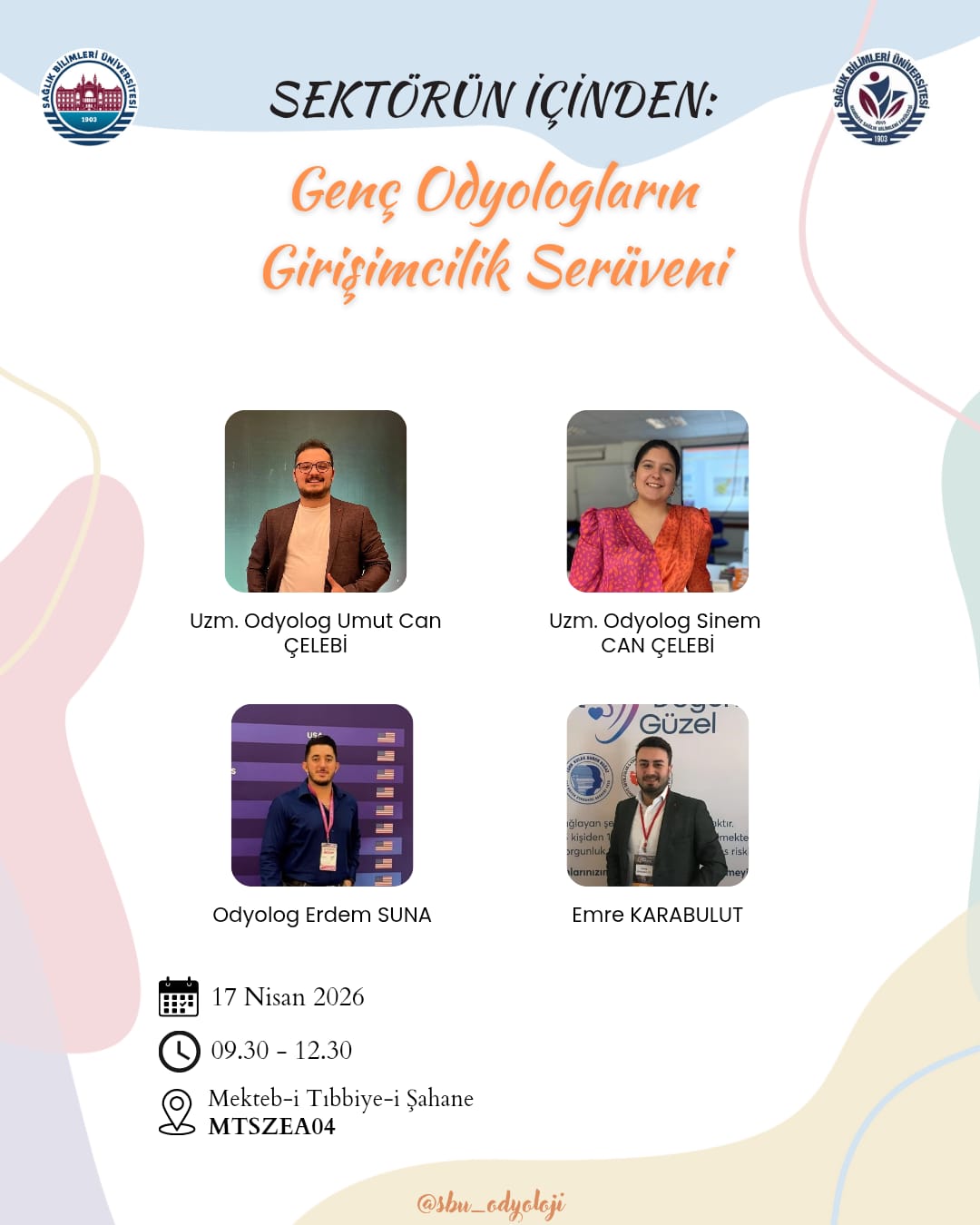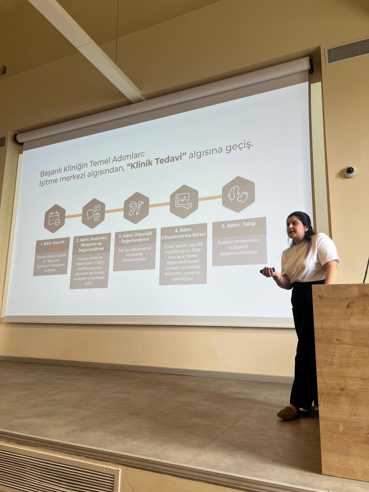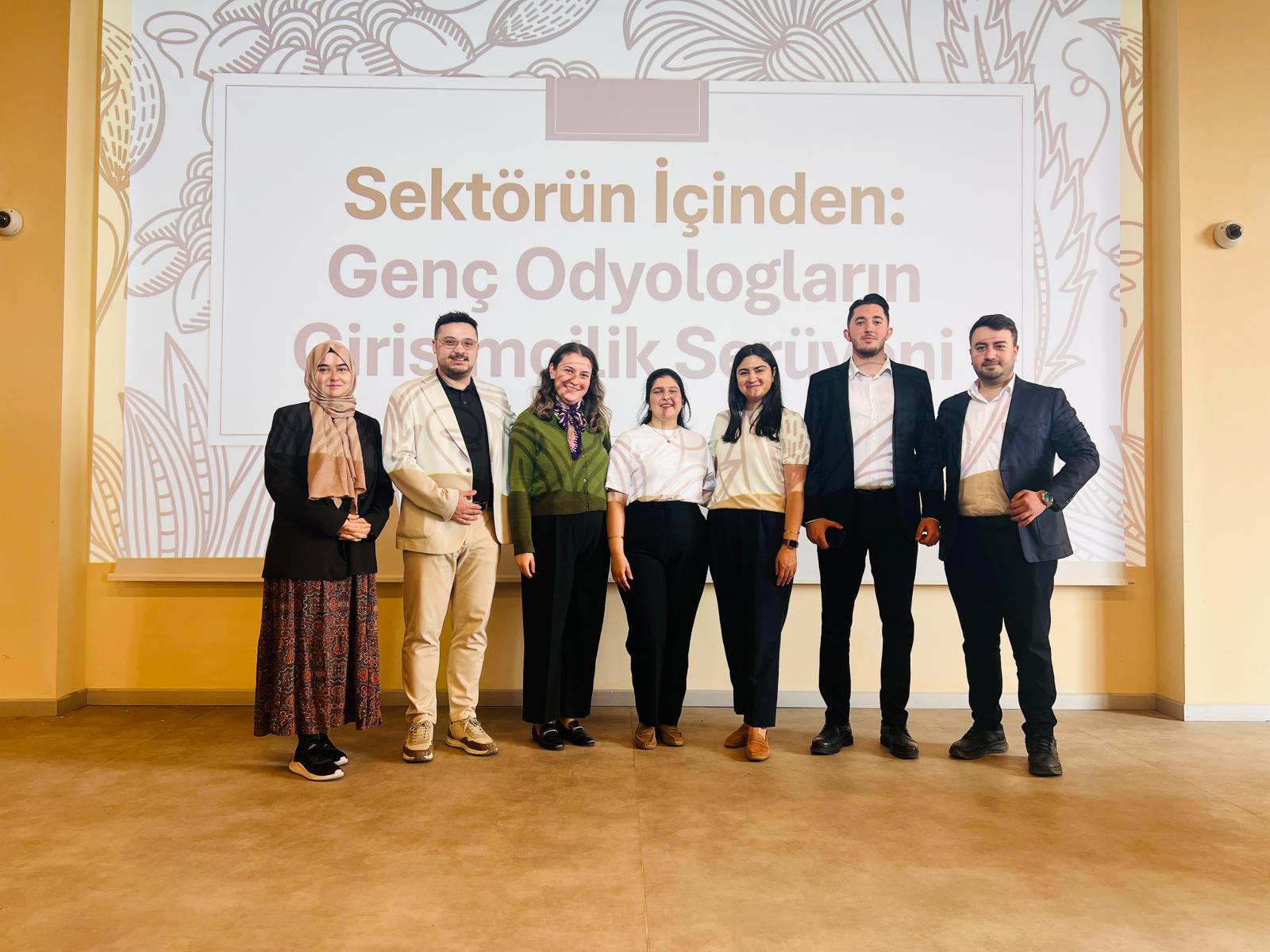 Odyoloji öğrencilerimizin mesleki motivasyonlarını artırmak ve sektörün içinden gerçek deneyimleri dinlemelerini sağlamak amacıyla 'Sektörün İçinden: Genç Odyologların Girişimcilik Serüveni’ isimli sosyal etkinliğimiz planlanmıştır. Etkinliğimizde, uzman konuklarımız kendi girişimcilik hikayelerini aktararak, öğrencilerimizin klinik ve ticari alandaki sorularını yanıtlamışlardır.
